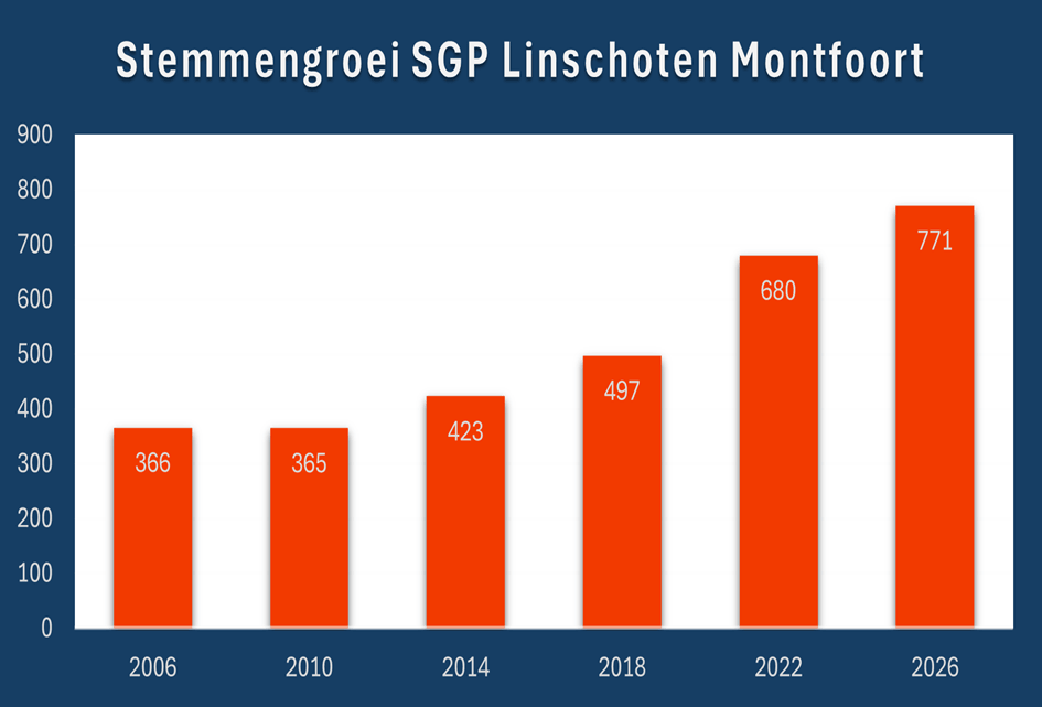 De SGP Linschoten Montfoort is blij en dankbaar voor de groei in stemmen tot een record van 771 stemmen en het behoud van twee zetels. Bart Timmerarends en Samuel van den Berg zullen de SGP vertegenwoordigen in de raad.